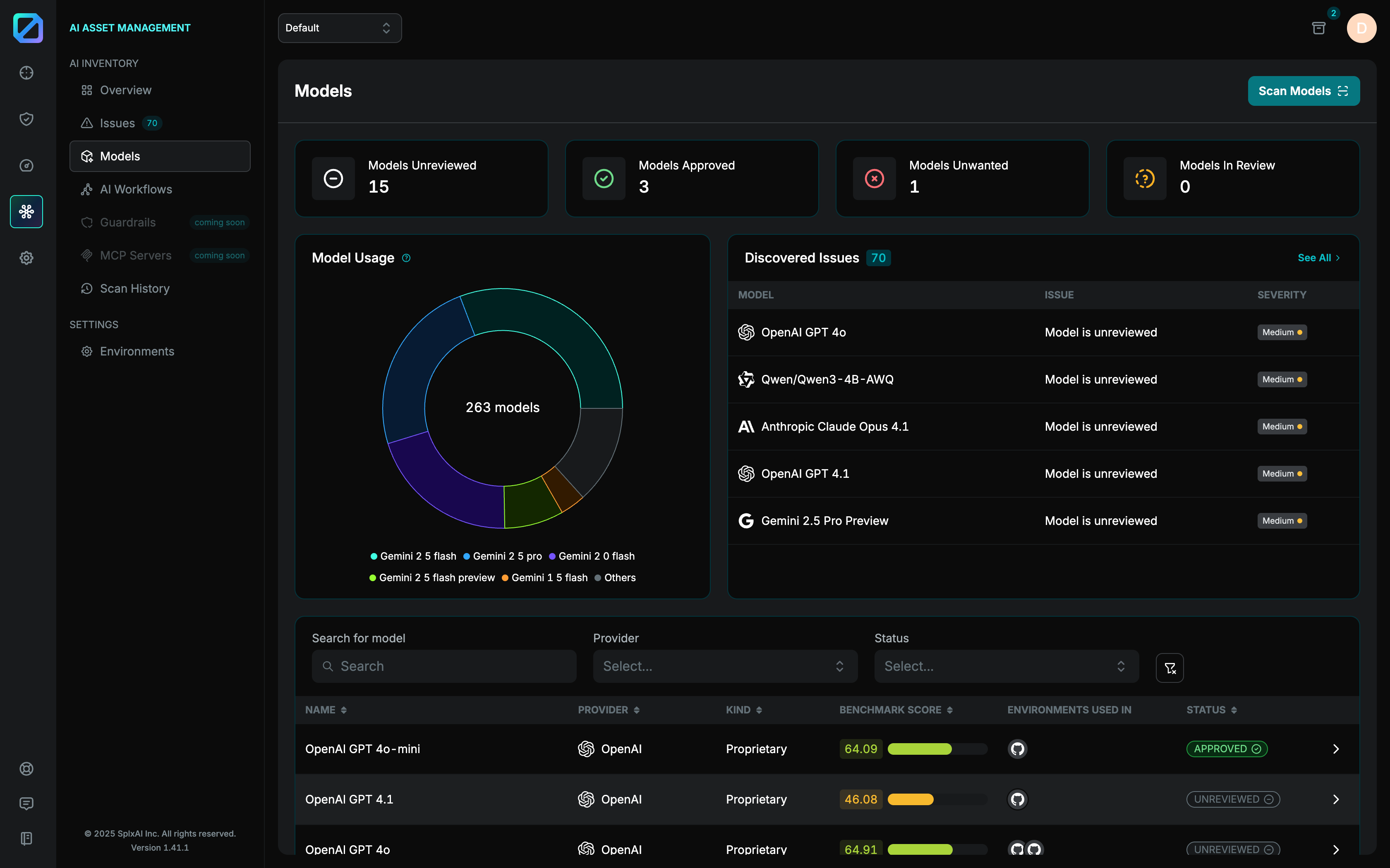 <figure><img src="https://1029475228-files.gitbook.io/~/files/v0/b/gitbook-x-prod.appspot.com/o/spaces%2Fi12bk7lo75SODuwcRCQp%2Fuploads%2FHxsGmyizDvagVS63K9ha%2Fprobe.splx.ai_w_778_ai-assets%20(3).png?alt=media&#x26;token=d21a5934-9eba-4e5a-9971-e37186e2fdf0" alt=""><figcaption><p>Figure 1: Models Page</p></figcaption></figure>