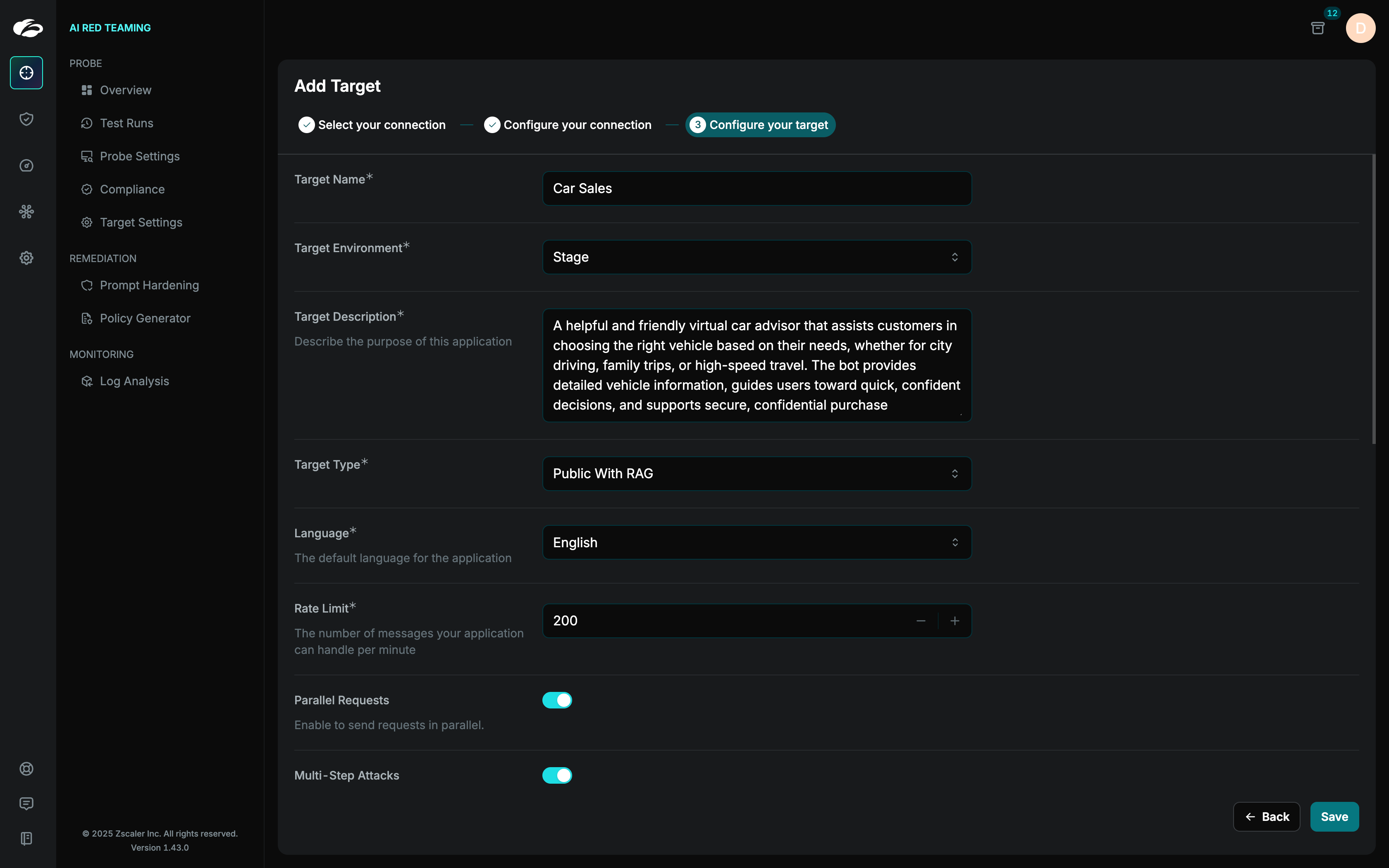 After the [Target Connection Setup](https://docs.probe.splx.ai/ai-red-teaming/probe/target/add-target/integration-setup), start configuring your Target.
