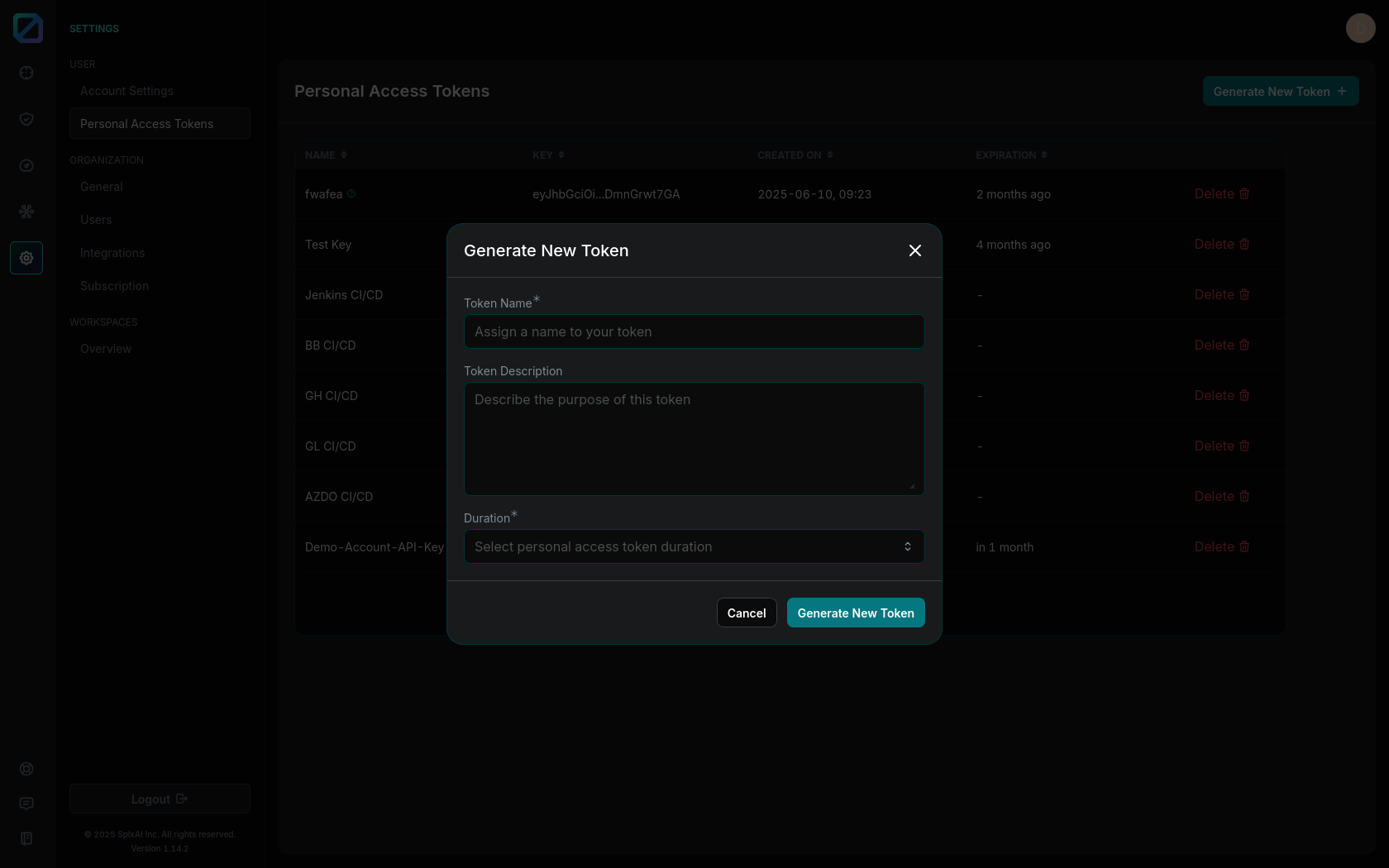 Duration: Specify the token’s expiration period.